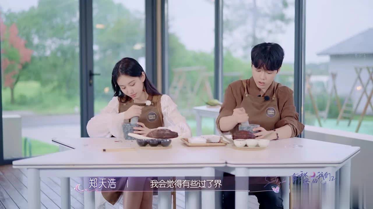 王梓莼对手工不是太擅长,再加上她做了美甲,剥巧克力豆的时候不太方便,还把美甲搞得劈叉了,她默默地在一旁抱怨。郑天浩完全当看不见,王梓莼的手上弄脏了,期待郑天浩帮她擦一下,郑天浩甚至都没有抬头看一下她。